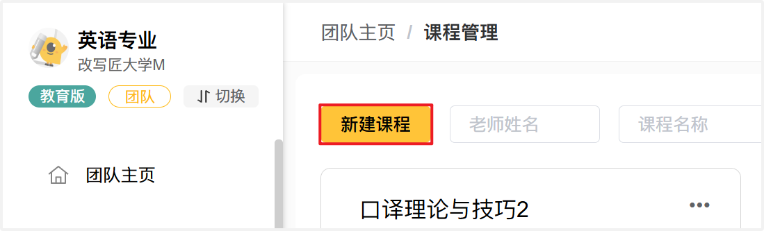 在团队页面,点击 我的教学-课程管理 ,进入课程管理页面。