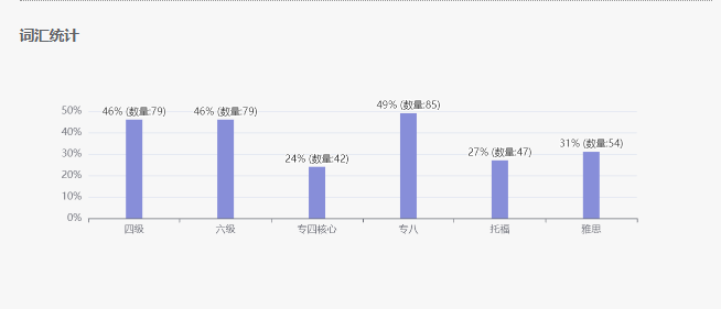 词汇统计 部分,改写匠将统计您文章中的四级、六级、托福和雅思词汇,并进行可视化展示。