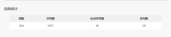 总体统计 部分,改写匠将统计您文章的词数、字符数、标点符号数与总句数。