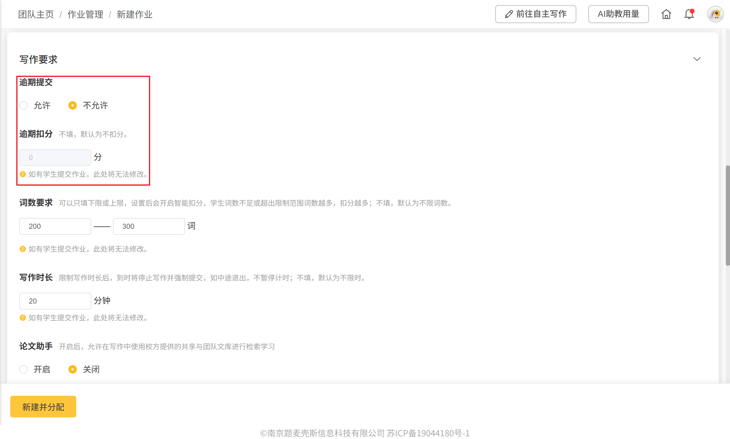 逾期提交是指学生提交作业的时间超过了老师布置的作业截止时间。支持老师在 布置作业 时,开启或关闭 逾期提交 功能。