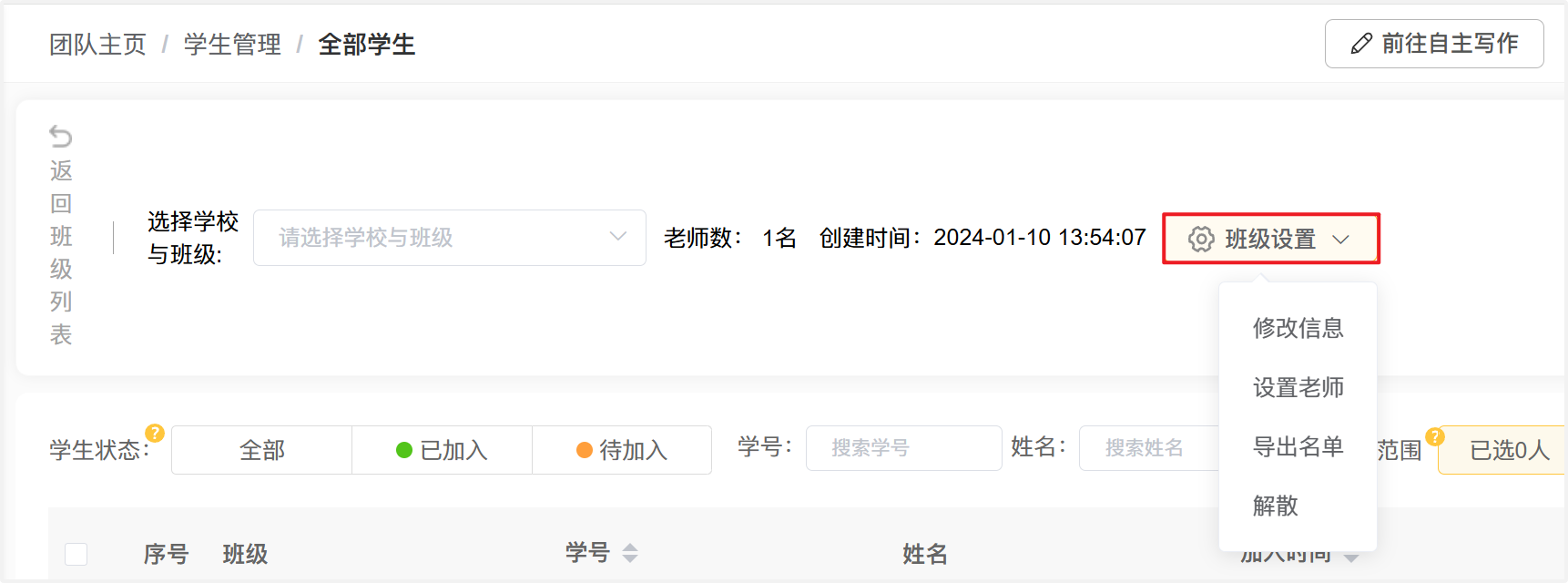 为保证班级数据安全,改写匠教育版不支持解散已有学生的班级。