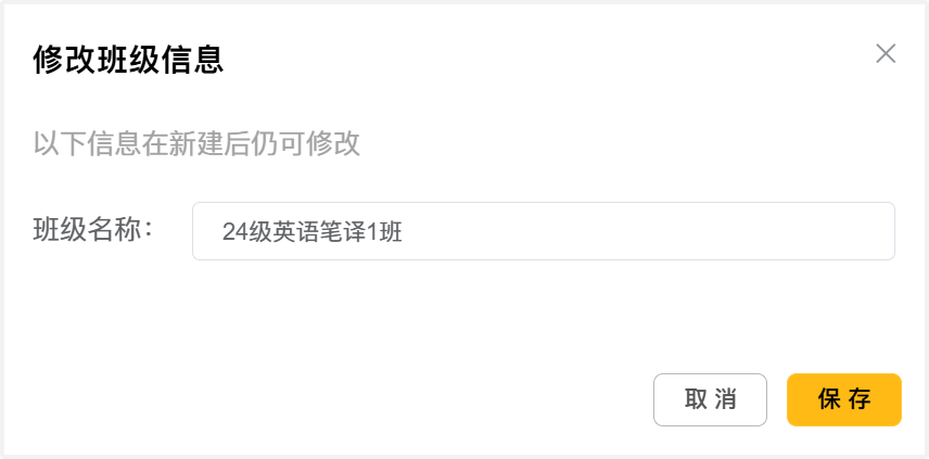 修改信息,即修改班级名称,支持反复修改。输入班级新名称,点击保存即可。