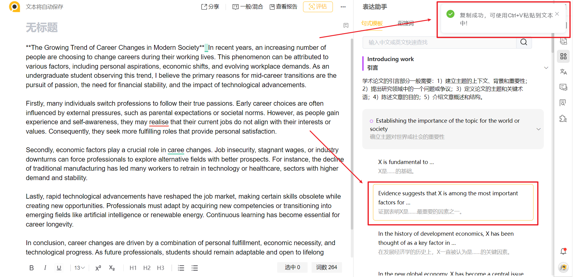 点击对应句子即可快速复制并粘贴至你的文章,方便快捷。