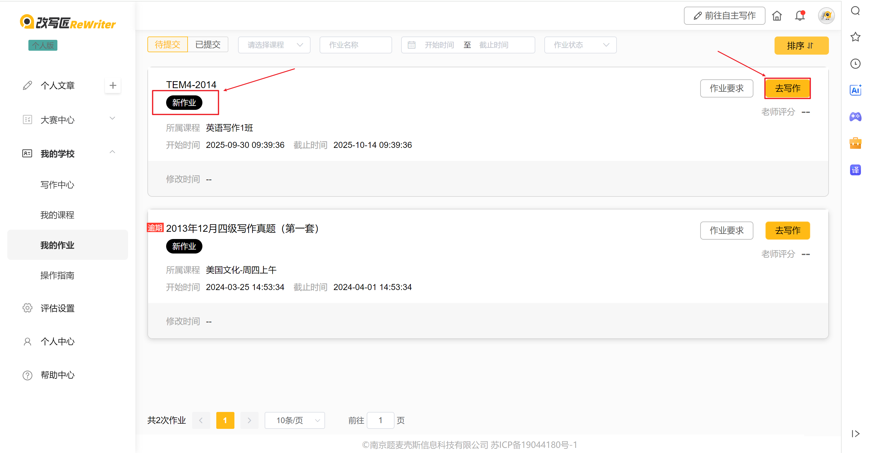 如果老师在批改作业时,发现您的作业不符合要求,老师可以将您的作业退回到 新作业 状态,要求您对作业进行修改。